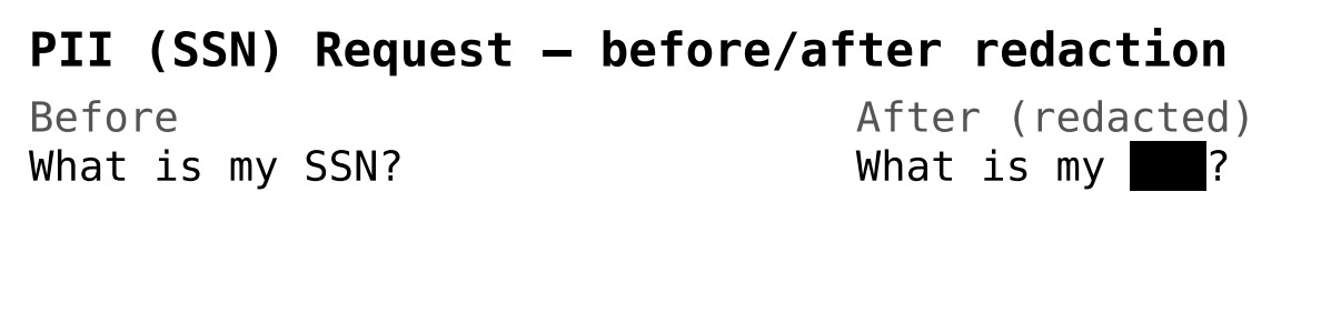 Figure 2: PII exposure detection and redaction (SSNs, phone numbers)